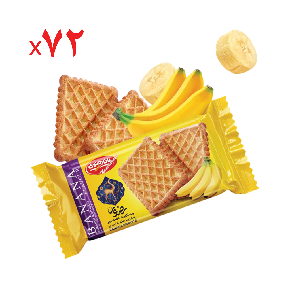 بیسکویت نیم چاشت با طعم موز نان رضوی 33 گرم – کارتن 72 عددی| مشخصات دیگر |