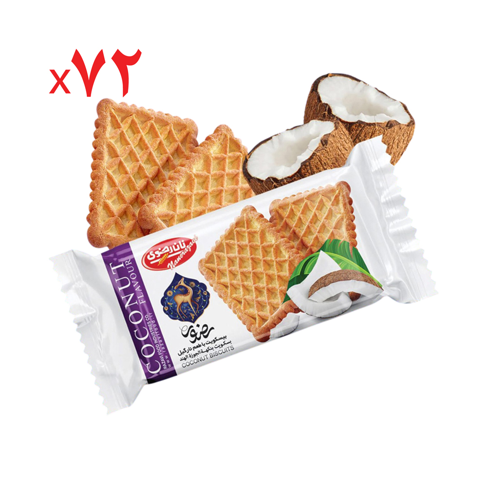 بیسکویت نیم چاشت با طعم نارگیلی نان رضوی 33 گرم – کارتن 72 عددی| مشخصات دیگر |